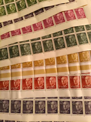 Colección de sellos de España, del Caudillo Francisco Franco, del Rey emérito Juan Carlos I, y muchos otros. Todos (a excepción del rojo) sin timbrar y con goma original. Escucho ofertas por chat wallapop. Vendo sueltos o por separado según necesiten. Sellos francisco franco pesetas ptas rey juan carlos filatelia filatelico filatélico coleccionista colección coleccion coleccionismo oferta sin timbrar españa fabrica papel moneda y timbre