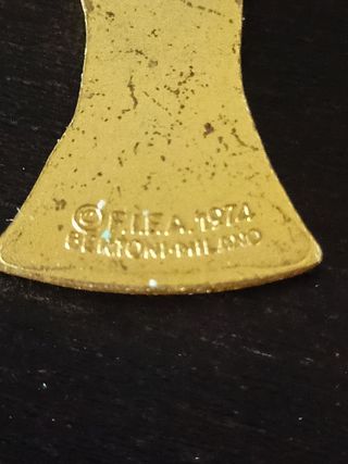 ¡JOYA COLECCIONISTA! ⚽ Llavero original del Mundial Italia '90 fabricado por BERTONI MILANO, la casa que forja la Copa del Mundo real de la FIFA. 100% Original: Con sello de autenticidad Bertoni y grabado FIFA 1974 en el reverso. Calidad: Metal macizo con relieve, nada de copias baratas. Estado: Muy bueno, con pátina vintage de la época. Pieza exclusiva para amantes del fútbol retro y coleccionistas de los Mundiales. ¡Único en Wallapop!
