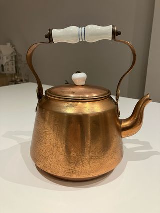 Tetera de cobre macizo y porcelana
