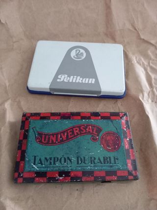 Antigua caja de tinta para sello universal y otra pelikan están secas es de colección ,el precio es por las Dos
