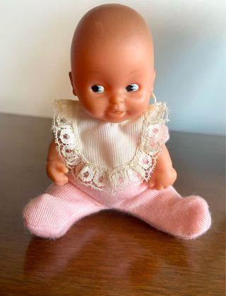 Este es un muñeco vintage Barriguita Pelón de los años 80. Es un juguete coleccionable con un diseño clásico. - Muñeco de plástico. - Ropita de punto rosa. - Babero con encaje. En muy buen estado. Solo algunos detalles de despintado en la cabeza (puede verse en la foto) Sello de la marca Famosa en el cuello.