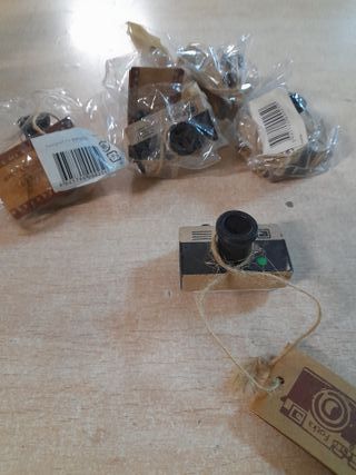 Lote de 5 sellos de madera y goma con dibujo de cámara de fotos reflex. Nuevo sin usar. Ideal para regalar o para realizar manualidades. Medidas: 4 cm aprox