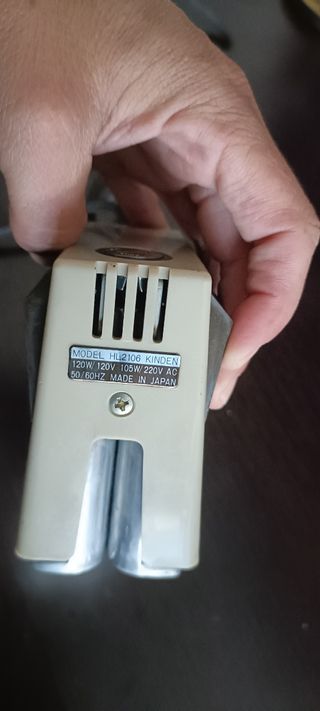 Antigua plancha de viaje marca Norelco que adaptada a raya de pantalón y que también útil para sellar plastico