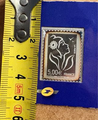 Sello de plata maciza 999 de Marianne, emitido por La Poste de Francia. Ideal como pieza de colección o inversión. - Sello de plata 999. - Diseño Marianne. - Valor facial 5,00€. - Emitido por La Poste, Francia.