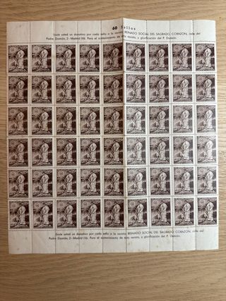 Hoja con 60 sellos - Sellos nuevos sin señal de fijasellos con la imagen del Padre Damián.