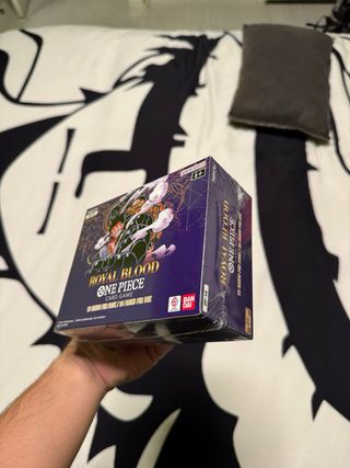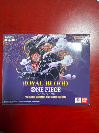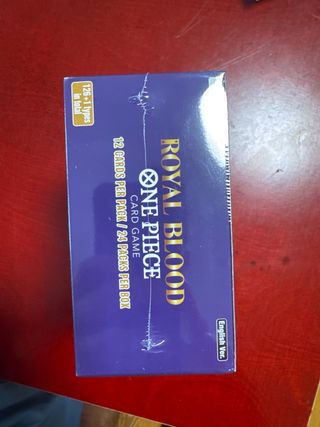 Caja sellada de cartas de One Piece Royal Blood OP-10. - Contiene 12 cartas por sobre. - Incluye 24 sobres por caja. - Fabricado en Japón.