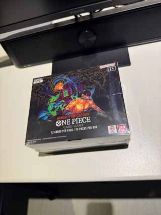 Caja sellada de cartas de One Piece, set Wings of the Captain (OP-06). - Versión en inglés. - Contiene 12 cartas por sobre. - 24 sobres por caja.