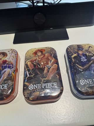 Pack de tres latas coleccionables de One Piece. - Diseño con personajes de One Piece. - Ideal para fans de la serie.