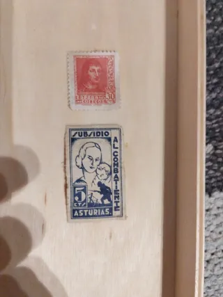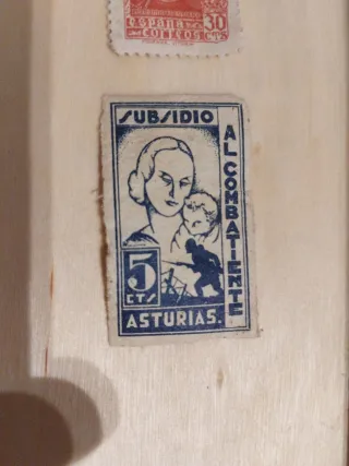 Dos sellos de la Guerra Civil Española. - Sello de España con retrato y valor 30. - Sello de Subsidio Al Combatiente de Asturias con valor 5 CT.