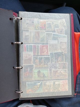 Álbum rojo de sellos antiguos de España. Está en buen estado. - Contiene varios sellos antiguos de España. - Perfecto para coleccionistas.
