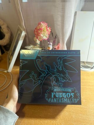 Caja de Entrenador Élite de la expansión Llamas Fantasmales de Pokémon TCG. En español Etb phantasmal flames - Contiene cartas de Pokémon TCG. - Diseño con arte de Charizard. - Caja sellada de fábrica.