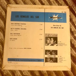 Sello: Marfer – M. 740 Formato: Vinilo, 7", 45 RPM, EP, Mono País: Spain Publicado: 1968 A1 Una Mentira Piadosa Written-By – Hnos. García Segura* 2:38 A2 Asi Te Quiero, Dolores Written-By – Eliso*, Valls* 2:54 B1 Ole, Matador Written-By – Hnos. García Segura* 2:56 B2 Este Amor Written By – E. Edaso