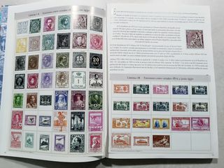 Catálogo completo de sellos españoles de la peseta. - Reproducciones autorizadas de 2.340 sellos. - Editado en 2015 - Cubre desde la primera emisión en 1872 hasta el año 2000. - Sellos en lámina autoadhesiva. Edición Completa y en excelente estado.