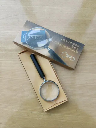 Lupa profesional de la marca Optic's con mango. - Cristal óptico tallado. - Diseño de lujo.