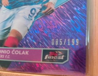 Carta coleccionable de Antonio Colak, jugador del Rangers F.C. - Edición limitada y numerada. - Incluye el sello RC (Rookie Card). - Serie Finest. #cromosnumerados #cardsnumered #topps #toppsfinest #numberedcard