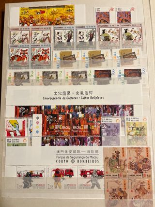 Conjunto de sellos de Macao con la temática Patrimonio Classificado y Edificios TAP SEAC. Colección de cientos de sellos de Macao Moderno. - Incluye sellos con imágenes de edificios históricos de Macao. - Presenta un sello con una escena de comida tradicional. - Algunos sellos muestran escenas culturales y personajes. - Incluye sellos con valores de 2.5, 0.40, 0.70, 0.90, 2.50 y 0.30. - Sello conmemorativo de WORLD STAMP EXPO '89. PARA MÁS FOTOS ENVIAR MENSAJE