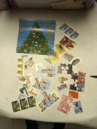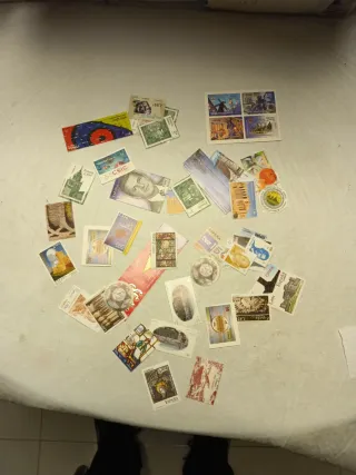 unos 100 sellos recortados de cartas. Hay repetidos. Antiguos en peseteas y otros actuales en euros. Hago envio por correo ordinario a cargo del comprador y bajo su responsabilidad.
