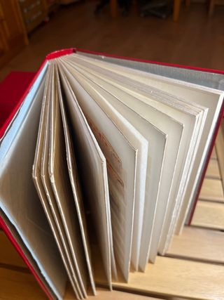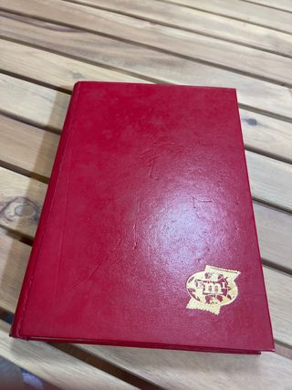 Clasificador de sellos de color rojo con un emblema dorado en la portada. Incluye varios sellos. - Cubierta de color rojo. - Emblema dorado en la portada.