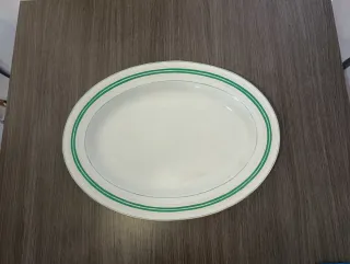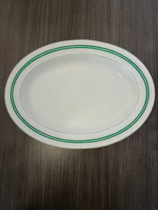 Fuente ovalada de la marca Pickman y Cia, China opaca, medalla de oro. Datada del siglo XIX principios del XX según sello. Mínimo desgaste según foto 2. Presenta un diseño clásico con un borde decorado con finas líneas verdes. Medidas; Largo- 43cm, Ancho- 32cm, Peso- 1'650kg.