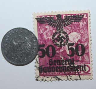 Moneda de un pfening cobre año 1940 - A ( Berlin ) Inscripción General Gouvernement en el sello. Sello 50 Pffening, General Gouvernement . Swastika Deutsches Reich Hazte con una pequeña parte de la historia. Más articulos en nuestro perfil, se pueden hacer lotes. :)