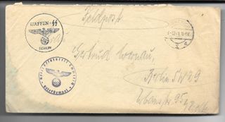 Carta original de la Segunda Guerra Mundial, utilizada como Feldpost (correo del frente). - Sello de Feldpost con fecha 22.5.42. - Dirección en Berlín-Schlachtensee. Solamente se exponen como artículos históricos coleccionables, en base a su interés para colecciones privadas filatélicas, numismáticas, militaría, o para investigación histórica..