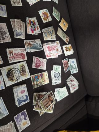 Conjunto de sellos postales de diferentes países y épocas. - Incluye sellos con diseños variados. - Algunos sellos muestran texto en alemán y árabe. - Presenta sellos con imágenes de monumentos y figuras.hay más pero no se pueden poner más fotos habrá alrededor de 300 sellos para algún coleccionista escucho ofertas el precio que pongo no es real