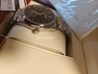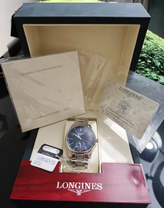 Elegante y bonito reloj Longines de la colección Master moonphase. -Reloj automático, Ø 40.00 mm, acero inoxidable, L2.909.4.97.6 - Caja y brazalete de acero inoxidable. - Esfera azul con efectos rayos de sol - Cambio de fase lunar - Cristal Zafiro - Estanqueidad hasta 3 bar Más detalles en página web Longines - Incluye caja original y documentos originales tarjeta seregrafiada con número de modelo y de serie del reloj no sellada y no se dispone de ticket ya que fue un regalo está nuevo a estrenar nunca usado .
