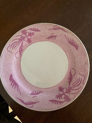 Precioso plato de cerámica china, con un diámetro de 27 cm. Tiene un diseño floral en tonos rosas. Es una pieza única y delicada, ideal para coleccionistas o amantes de la decoración vintage. - Diseño floral en color rosa. - Diámetro: 27 cm. - Material: Cerámica.