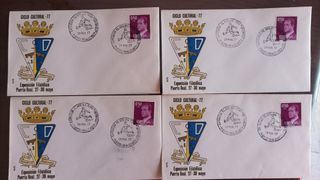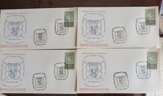 Vendo sobres de primer día del X aniversario de la fundación de 5 pts, 1 pts y 80 cents. De cuánto en cuatro con sus matasellos. Hacepto oferta.