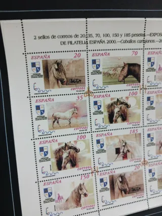Conjunto de sellos de correos de España del año 2000, con temática de caballos cartujanos. - Obra de Sánchez Pedrero y Granados.