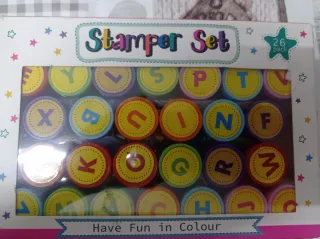 Set de 26 sellos con letras del abecedario. - Incluye las 26 letras del abecedario. - Ideal para manualidades y actividades infantiles. - Diseños coloridos y divertidos.