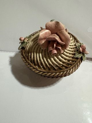 Preciosa cesta de Capodimonte con preciosa decoración floral. - Diseño tipo cesta tejida con delicada urdimbre de cerámica que se adorna con flores y hojas. - Estilo vintage de los años 50. - Redonda: 8cm Sello en la base de la prestigiosa firma italiana Capodimonte Ideal como un exclusivo regalo hecho a mano, vintage y único Precio negociable