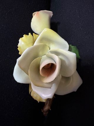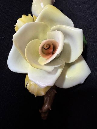 Delicado y cuidado adorno de flor realizada en cerámica, fabricada a mano, vintage, pieza única y original SELLO EN LA BASE de la prestigiosa firma CAPODIMONTE - Diseño delicado y detallado en tonos verdes, rosados y blancos Ideal como regalo exclusivo -Precio negociable