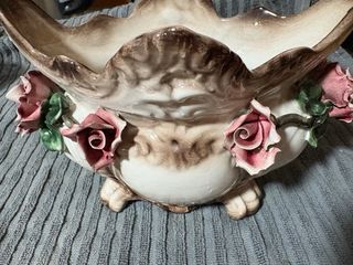 Precioso centro de mesa de cerámica con un diseño floral, vintage, echo a mano, mide 27 cm. - Elaborado con la técnica Capodimonte, con sello y numeración en la base, de la prestigiosa firma italiana CAPODIMONTE. - Detalle de delicadas rosas y hojas. - Tonos crema, rosa y marrones -precioso, original y único como regalo -Precio negociable