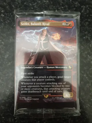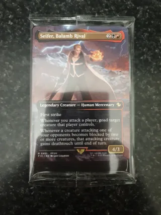 Carta de Magic: The Gathering de Seifer, Balamb Rival. Expansión final fantasy holiday reléase en inglés no foil + 16 cartas de tierras arte extendido no foil. Sellado. - Tipo: Criatura Legendaria - Humano - Ilustrador: Luis Lasahido. - Edición: FFVIII.