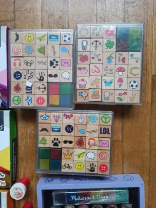 Conjunto de sellos para niños de las marcas Crelando y Melissa & Doug. - Set de sellos Crelando con 10 piezas. - Set de sellos Crelando con 10 piezas. - Set de sellos Crelando con 10 piezas. - Set de sellos Melissa & Doug con 6 piezas y tinta. - 4 Sellos redondos inglés - 4 Sellos cuadrados Frozen - 3 cajas con sellos decorativos de diferentes diseños. tags: juguetes niños; juguetes infantiles; juegos de mesa; diana; coches; muñecos; lego; frozen; playmobil; peluches; muñecos; guardapijama niños Zapatos bebé; calzado niños Ropa bebé; ropa recién nacido; silla bebé; carro bebé #regalos #coleccionismo