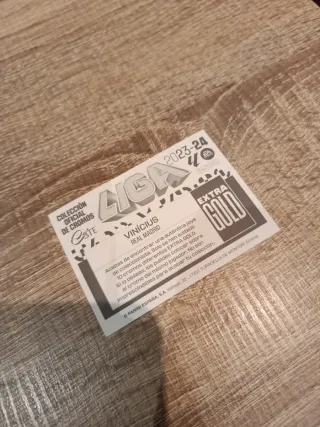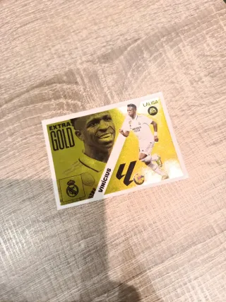 Cromo de colección de Vinicius Jr. de la temporada 2023-24. - Edición Extra Gold. - Diseño brillante y llamativo. - Nunca pegado