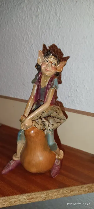 Figura decorativa de un duende con una calabaza. - Detallado diseño de fantasía. - Colores vivos y acabados cuidados. - Se hace envío - Escucho ofertas - Preguntar sin compromiso