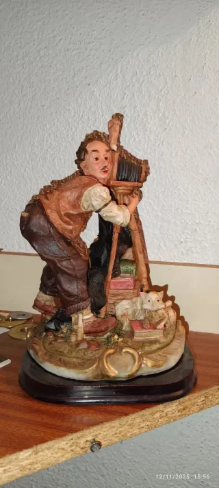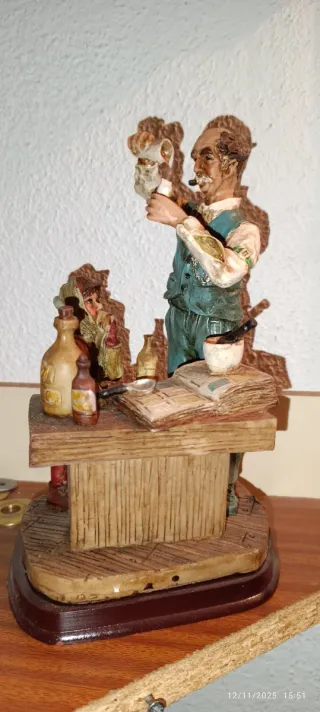 Figura decorativa detallada. - Representa a un boticario o alquimista. - Incluye varios frascos, un libro y un mortero. - Base de madera con diseño rústico. - Se hace envío - Escucho ofertas - Preguntar sin compromiso