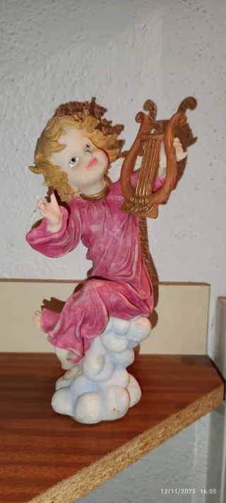 Figura decorativa de un ángel tocando el saxofón. Está sentado sobre una nube. - Detalle de alas. - Vestimenta azul. - Instrumento musical dorado. - Se hace envío - Escucho ofertas - Preguntar sin compromiso