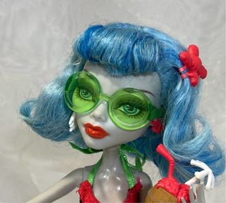 Muñeca de la colección Monster High. Ghoulia skull shores - Pelo azul ondulado. - Gafas de sol verdes. - Bikini rojo.