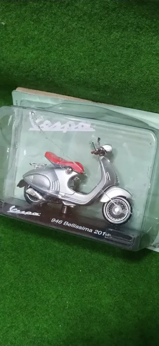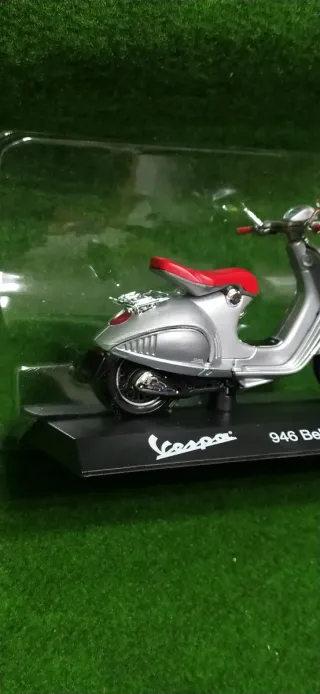 Miniatura de la Vespa 946 Bellissima del año 2014, ideal para coleccionistas. - Réplica detallada del modelo Vespa 946 Bellissima. - Año de fabricación: 2014. - Diseño plateado con asiento rojo. A pesar de que la caja está deteriorada la moto está nueva. Nada roto. Para cualquier duda preguntad sin problemas.