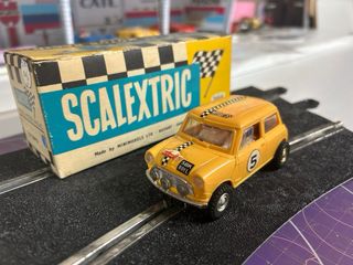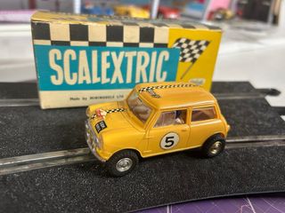 Mini Cooper de Scalextric Inglés Triang, es muy antiguo, tiene buen brillo a pesar de los años que tiene, le falta una esquina del parachoques trasero, se encuentra sin caja.
