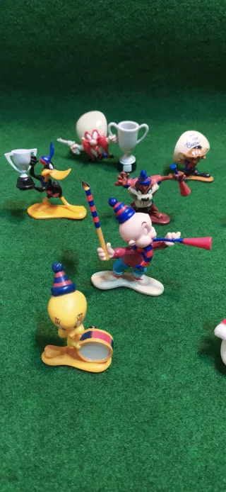 Colección de figuras de los Looney Tunes con temática del Barça. Ideal para fans y coleccionistas. - Personajes icónicos de Looney Tunes. - Diseños inspirados en el FC Barcelona.