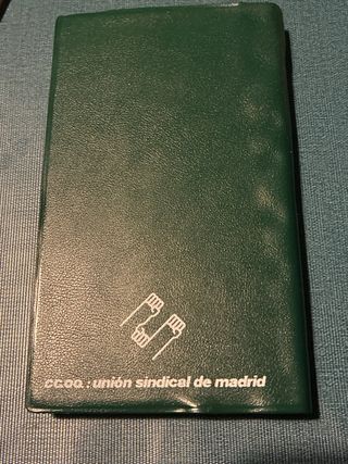 Libreta de Comisiones Obreras en color verde. - Diseño con logo circular. - Tapa dura.