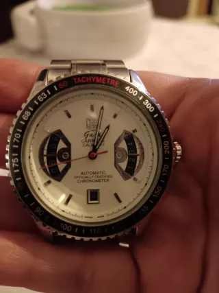 Reloj Tag Heuer Carrera Calibre 17 con cronómetro certificado Escucho ofertas - Esfera blanca. - Correa de acero inoxidable. - Bisel con taquímetro.
