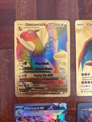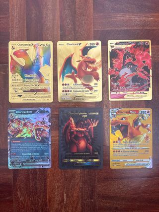 Colección de cartas Pokémon de Charizard. - Charizard GX Rainbow Rare - Charizard V Gold Rare - Charizard VMAX Gold Rare - Charizard EX Full Art - Charizard Gigante GX Black Edition - Charizard V-ASTRO Gold Rare