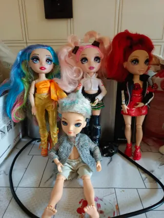 Muñecas Rainbow High.20 euros unidad. - Muñeca con pelo azul y naranja. - Muñeca con pelo rosa y coletas. - Muñeca con pelo rojo. - Muñeco con pelo plateado y chaqueta gris.
