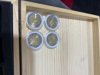 Conjunto de cuatro monedas de 2 euros, cada una protegida individualmente. - Diseño de moneda de 2 euros. - Incluye cuatro unidades.