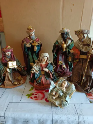 Conjunto de 6 figuras para el Belén, representando a los Reyes Magos y otras figuras tradicionales.Comprafo en el Corte Inglés. 6 Figuras de 25cm de Poliresina.SIN EXTRENAR. - Figuras detalladas con vestimenta colorida. - Incluye 6 figuras. En su caja original.
